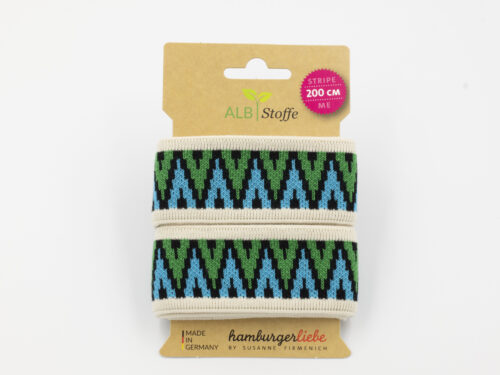 Das fertig konfektionierte Strickband in den Farben beige/dunkelviolett/lila/weiss, hergestellt in Deutschland von Hamburger Liebe, eignet sich hervorragend als Deko oder Abschlussstreifen von Pullovern, Cardigans, Blousons, oder Hosen.